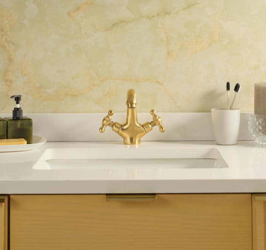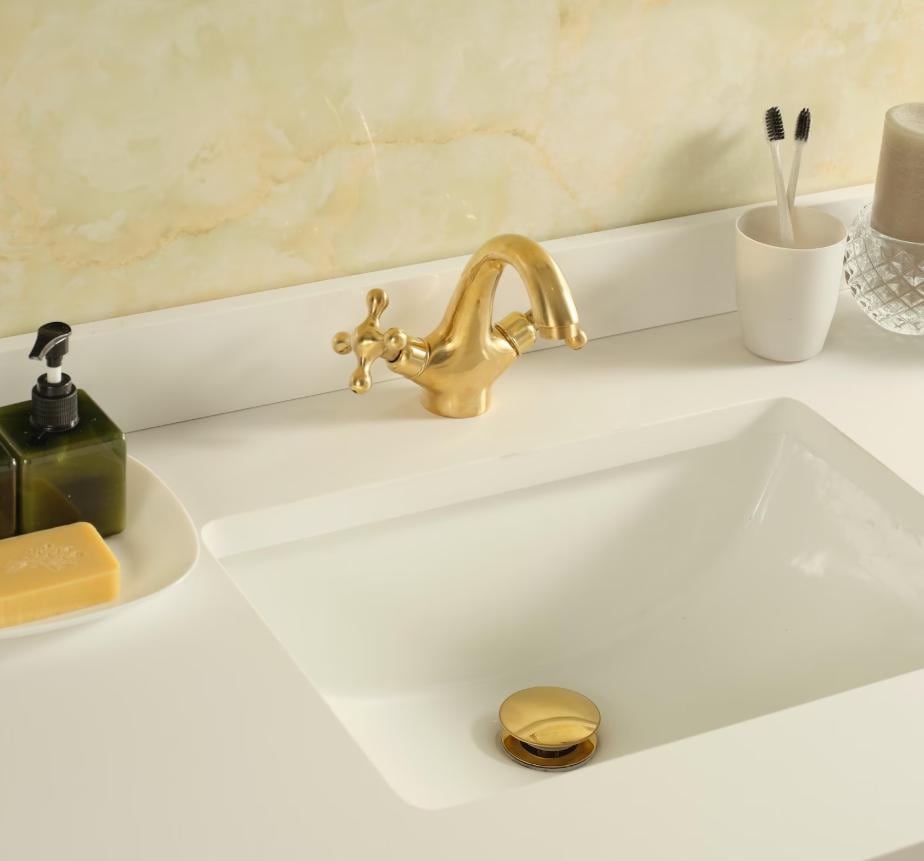 • Deck-mounted single-hole basin faucet made from solid brass with an antique finish, resistant to discoloration and rust for lifelong use