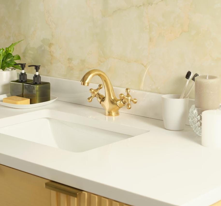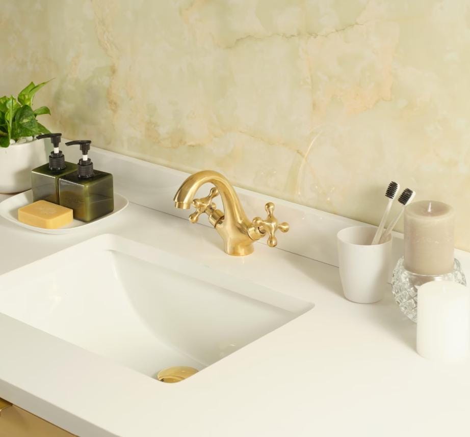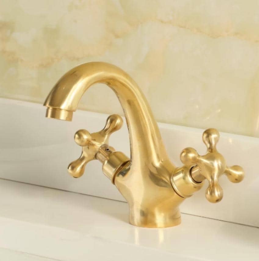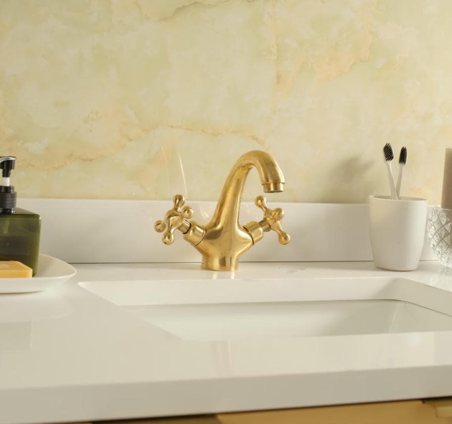 This elegant single-hole faucet features a simple cross handle design that brings warmth and character to any bathroom space. Handcrafted from solid, raw unlacquered brass, it retains its natural finish and gracefully develops a rich patina over time, showcasing the beauty of authentic materials.