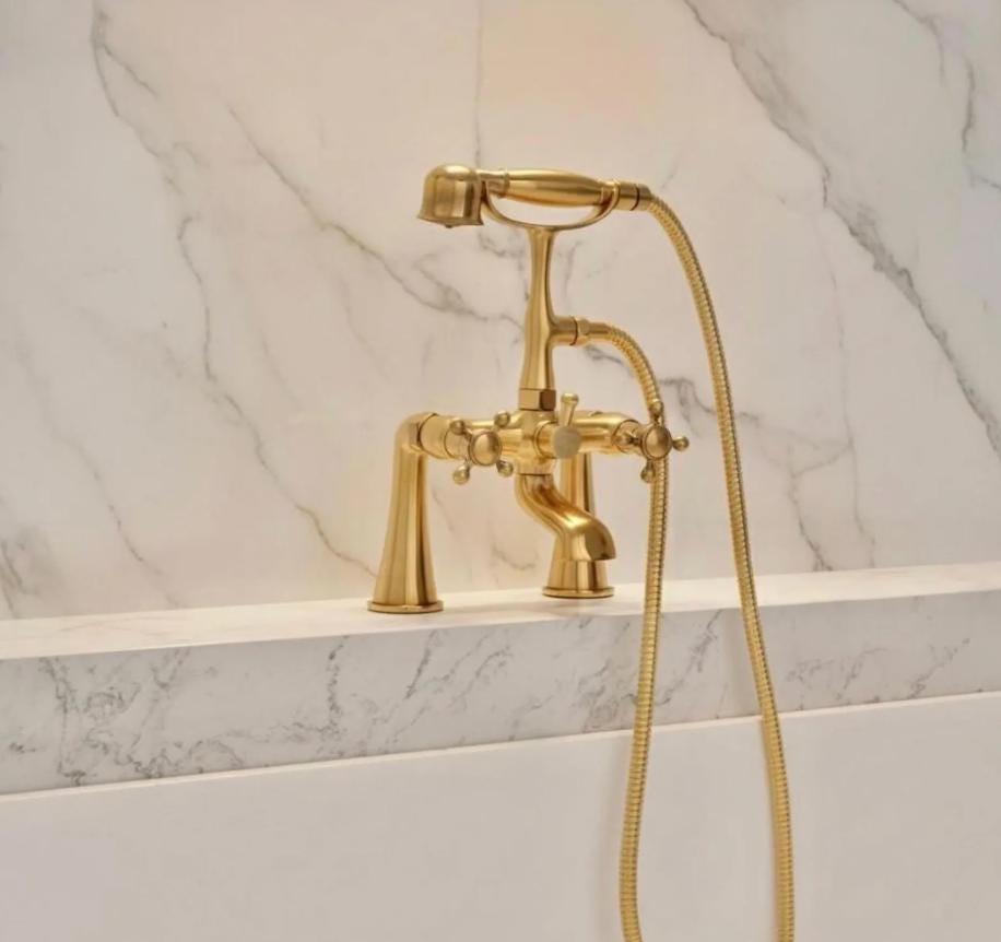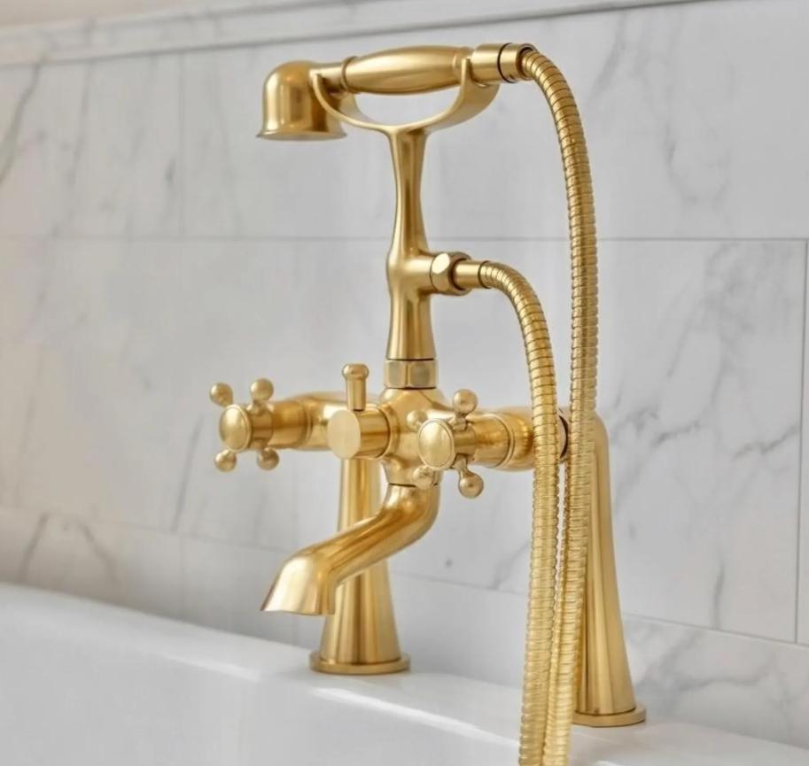 Enjoy timeless elegance with this deck-mounted bathtub faucet and hand shower, a true masterpiece that blends classic European luxury with modern craftsmanship.