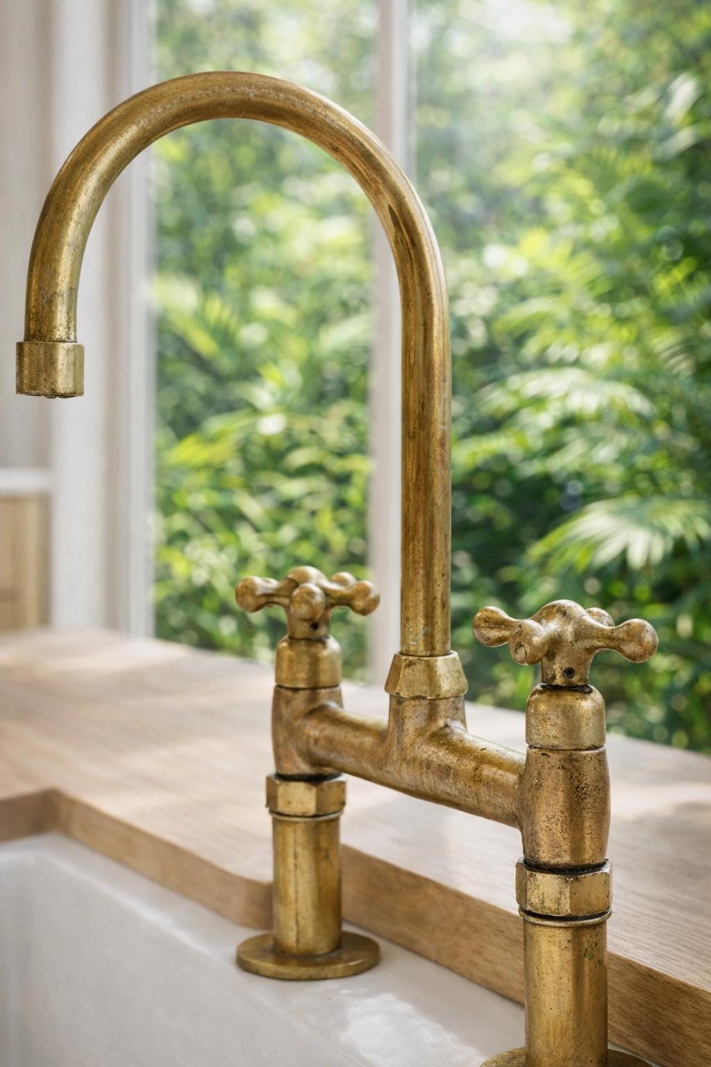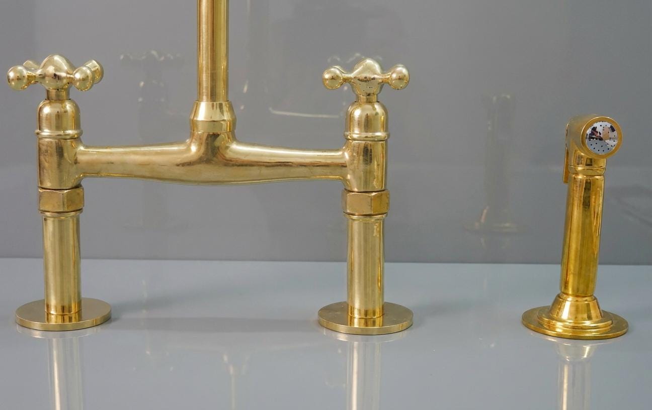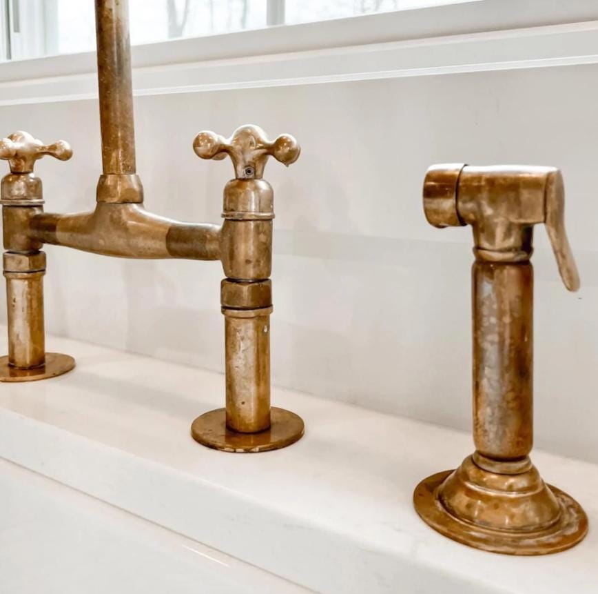 Transform your kitchen with our stunning Unlacquered Brass Kitchen Faucet. This unique piece features a timeless appeal, allowing it to develop a beautiful, worn patina over time. Embrace the charm of antique and vintage aesthetics blended with a touch of elegance. The high-quality craftsmanship and captivating gold tones make this faucet a standout choice for your new home. Discover the perfect blend of vintage allure and modern functionality with our unlacquered brass kitchen faucet.