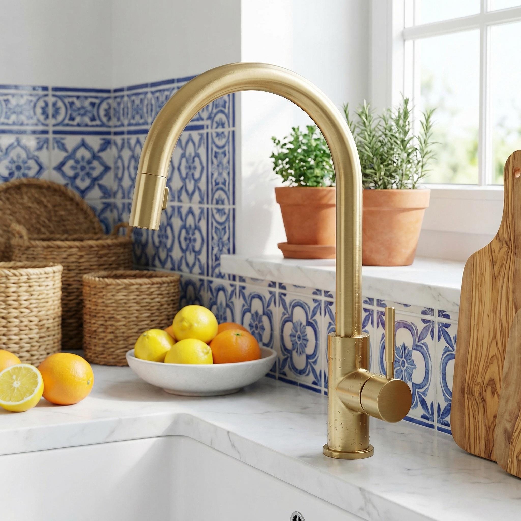 Transform your kitchen into a design masterpiece with our premium Brass Kitchen Faucet featuring a pull-down sprayer. The bold, industrial steam pipe-inspired design, combined with its stunning 360-degree swivel gooseneck, ensures this faucet will be the centerpiece of your kitchen.