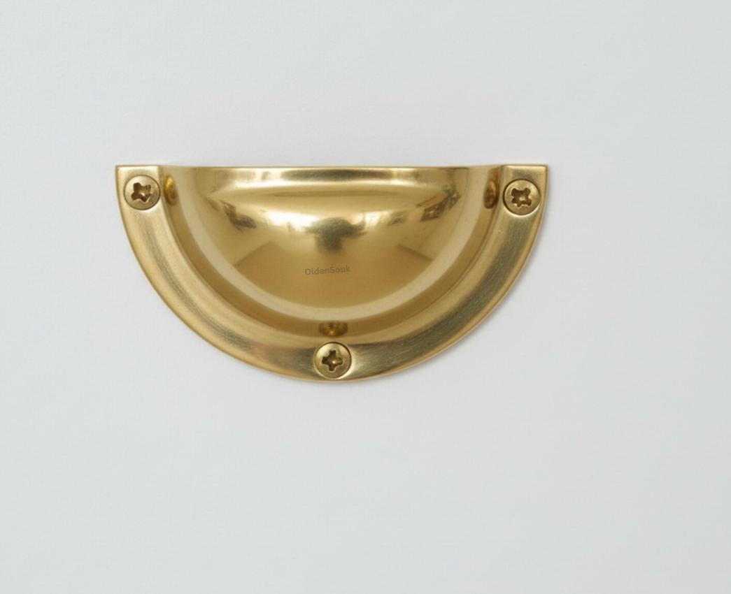 Upgrade your kitchen, bathroom, or furniture with our Handmade Solid Brass Cup Handles. This set of 3 unlacquered brass pulls is crafted from high-quality solid brass, offering both durability and timeless elegance. Perfect for kitchen cabinets, dresser drawers, or vanity units, these cup pulls are designed to age naturally with a unique patina that adds character to your home.