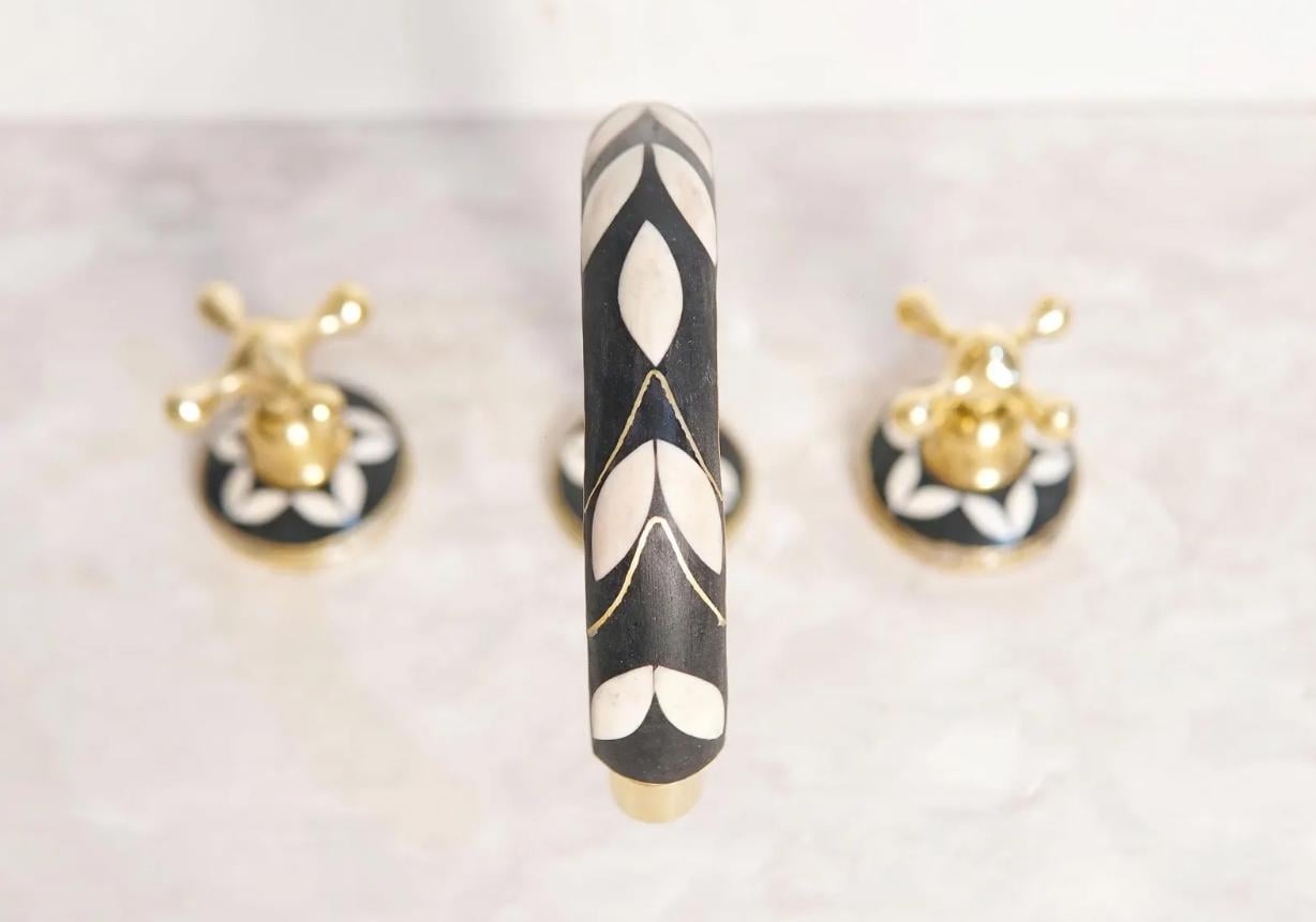 Artisan Brass & Resin Bathroom Faucet . Vintage Inspired 3 Hole Deck Mount Tap
