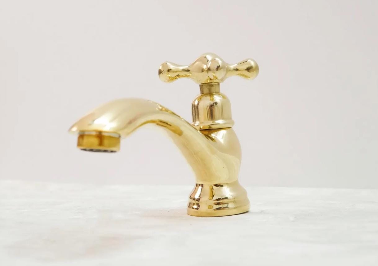 Bring timeless charm to your bathroom with this handcrafted unlacquered brass faucet from SeeVOOL . Made by skilled Moroccan artisans, this wall mounted faucet features an elegant, vintage design that ages beautifully over time.