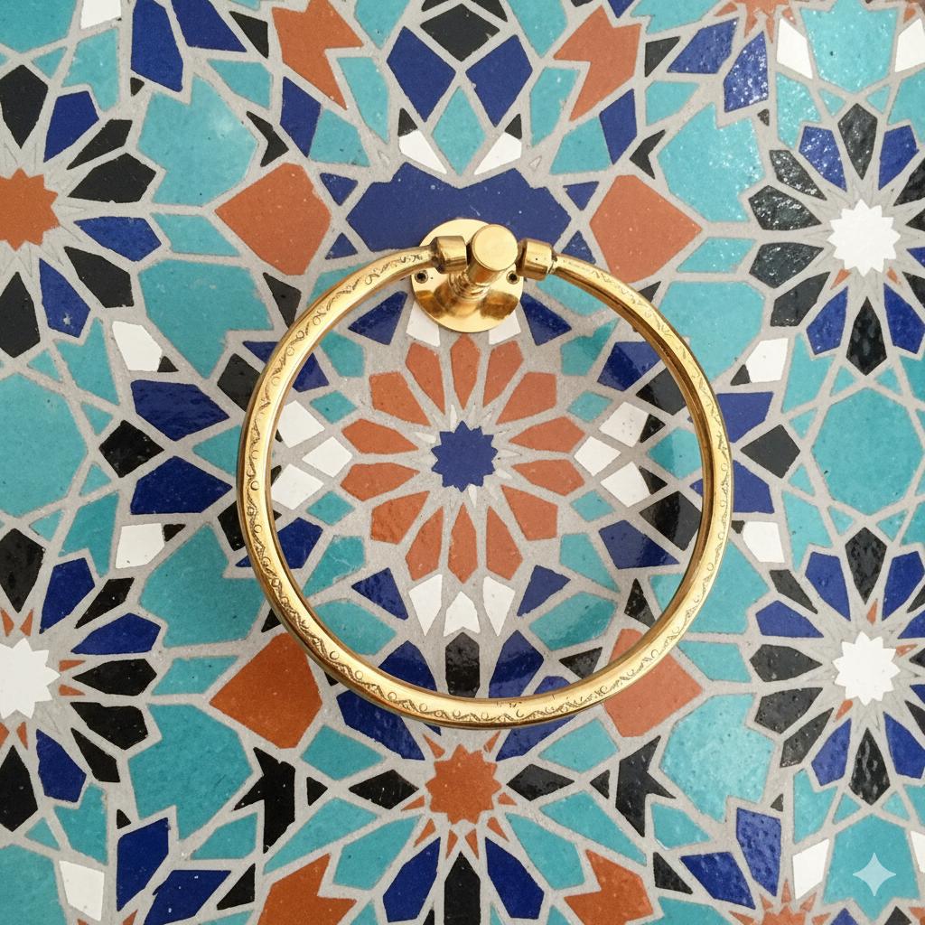 Elevate your décor with this beautifully handmade towel ring, forged from pure brass by Moroccan artisans. Over time, it develops a rich vintage patina that enhances its charm and character. A perfect mix of function and style, this piece brings authenticity and timeless elegance to any space.