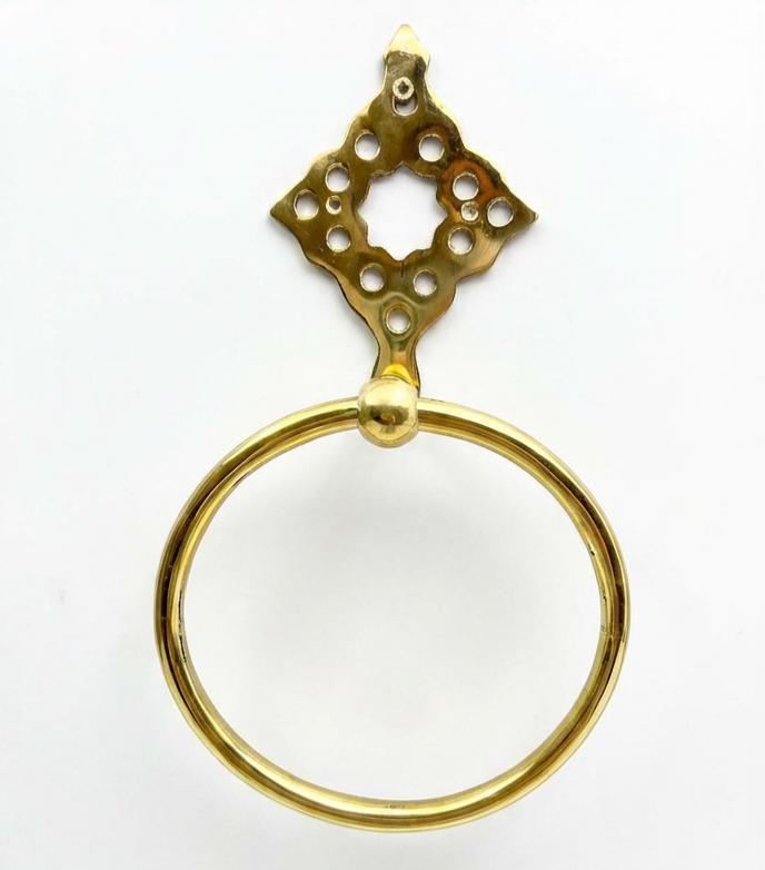 Add a touch of artisan elegance to your bathroom with this gold brass wall-mounted towel ring, featuring a beautifully detailed ornamental design inspired by Moroccan and traditional geometric patterns.