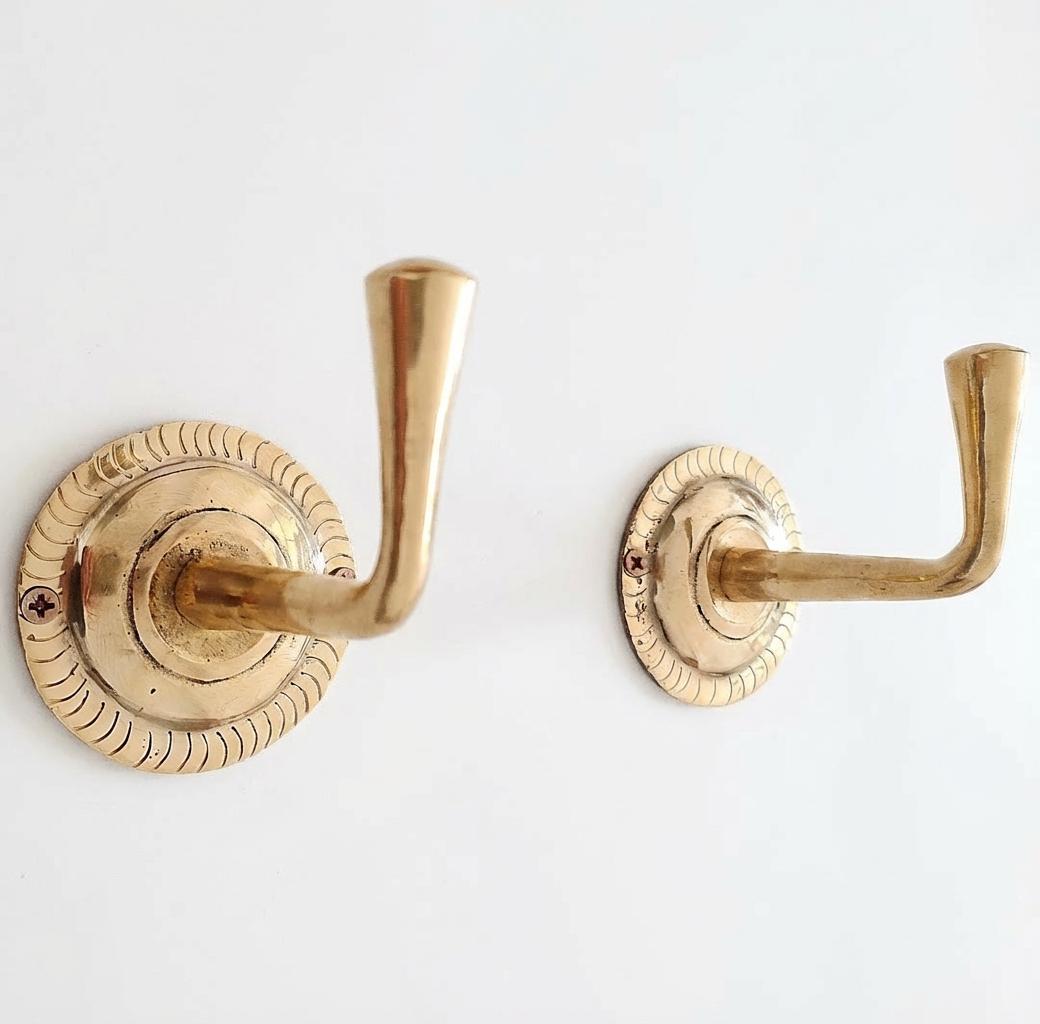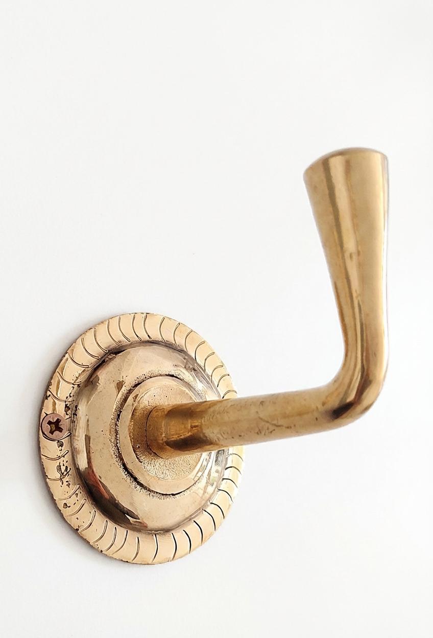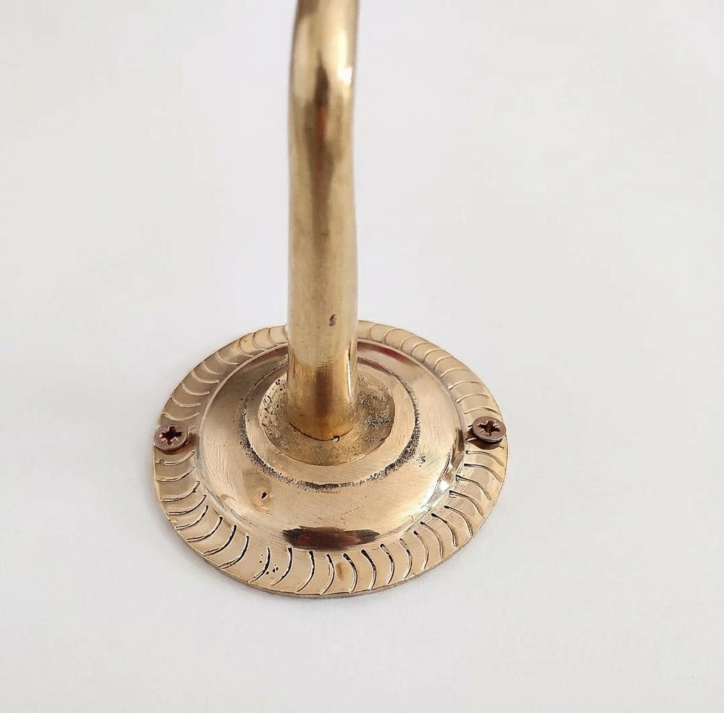 Perfect for coats, towels, robes, bags, hats, keys, or decorative displays, these sturdy brass hooks are as functional as they are beautiful. The natural brass will develop a rich patina over time, adding charm and authenticity to your space — or it can be polished to maintain its original shine.