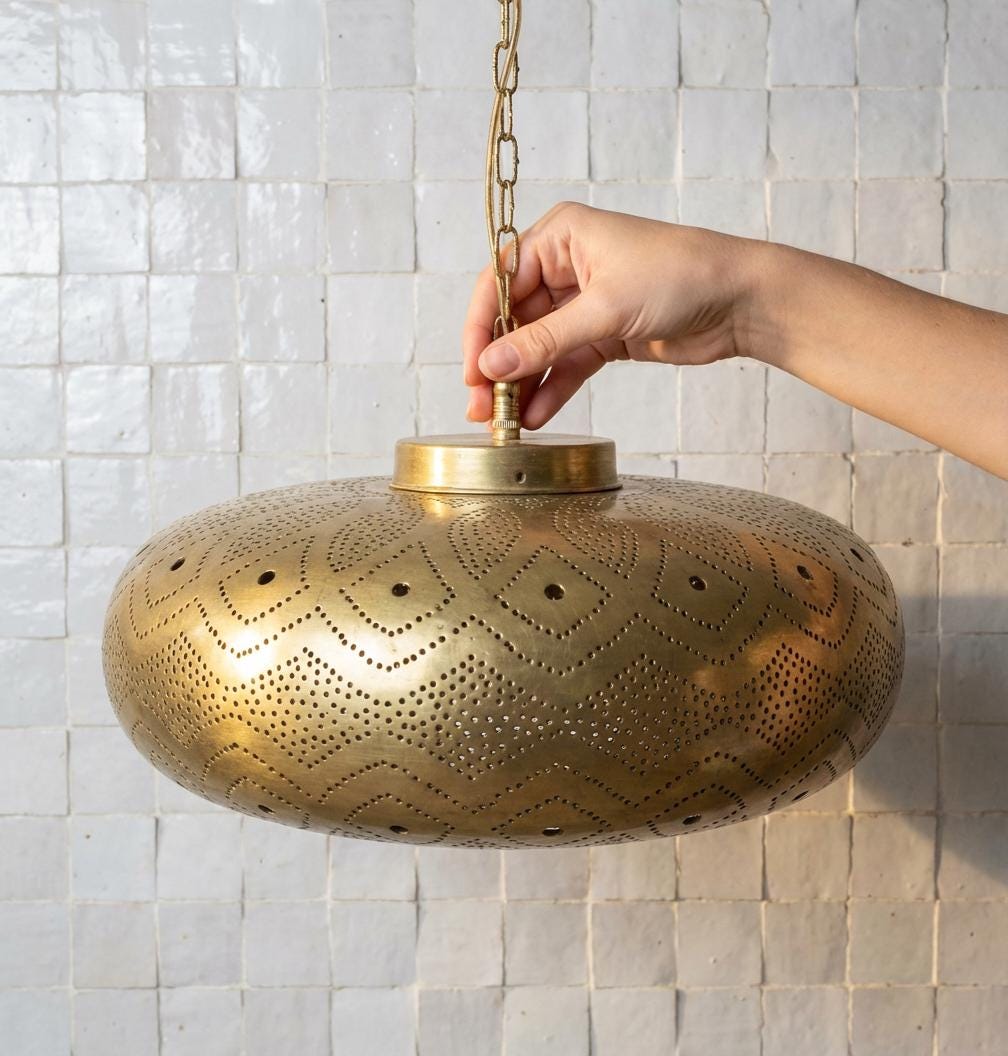 This beautiful handcrafted brass pendant light is made with exceptional attention to detail, offering both high quality and a unique artistic design. Each piece is carefully crafted to bring warmth, comfort, and character to your space.