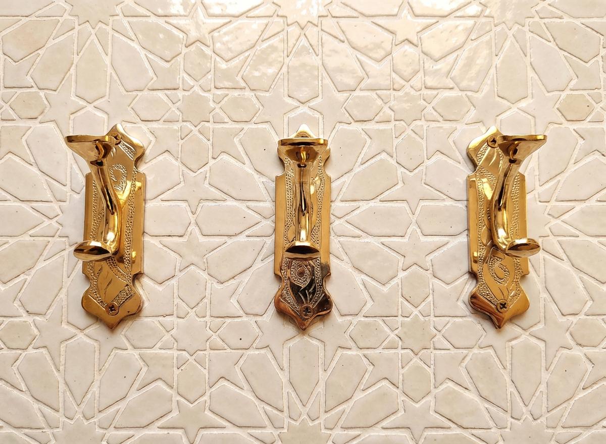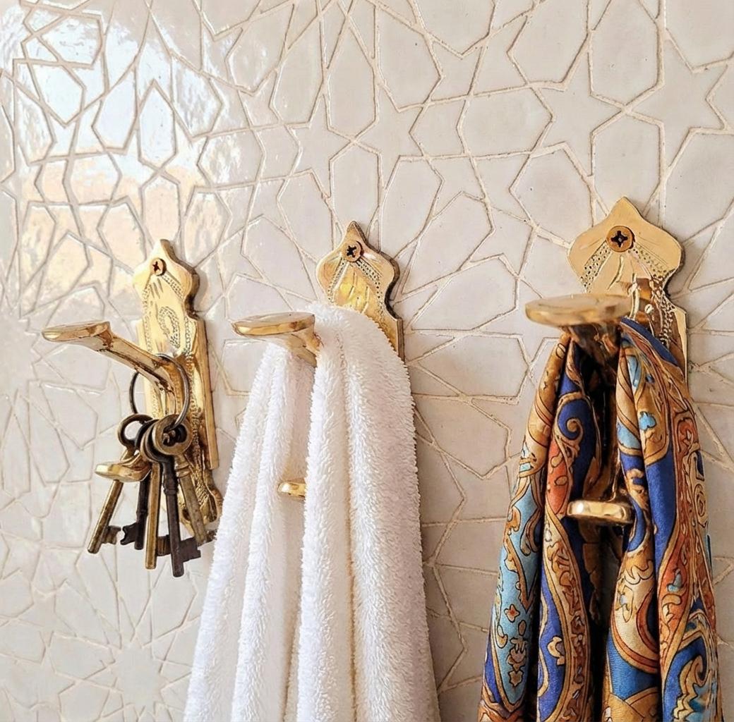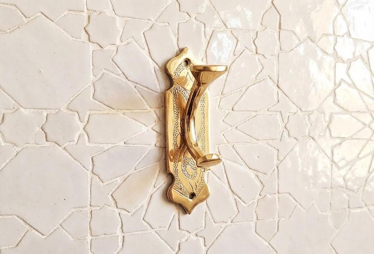 Each hook is handmade with attention to detail and quality, ensuring that no two pieces are exactly alike. The rich brass finish ages beautifully, adding to its timeless appeal. Whether you're looking for a stylish way to organize your space or simply want to incorporate a Moroccan touch into your home, this wall mount hook is both a practical and decorative solution.