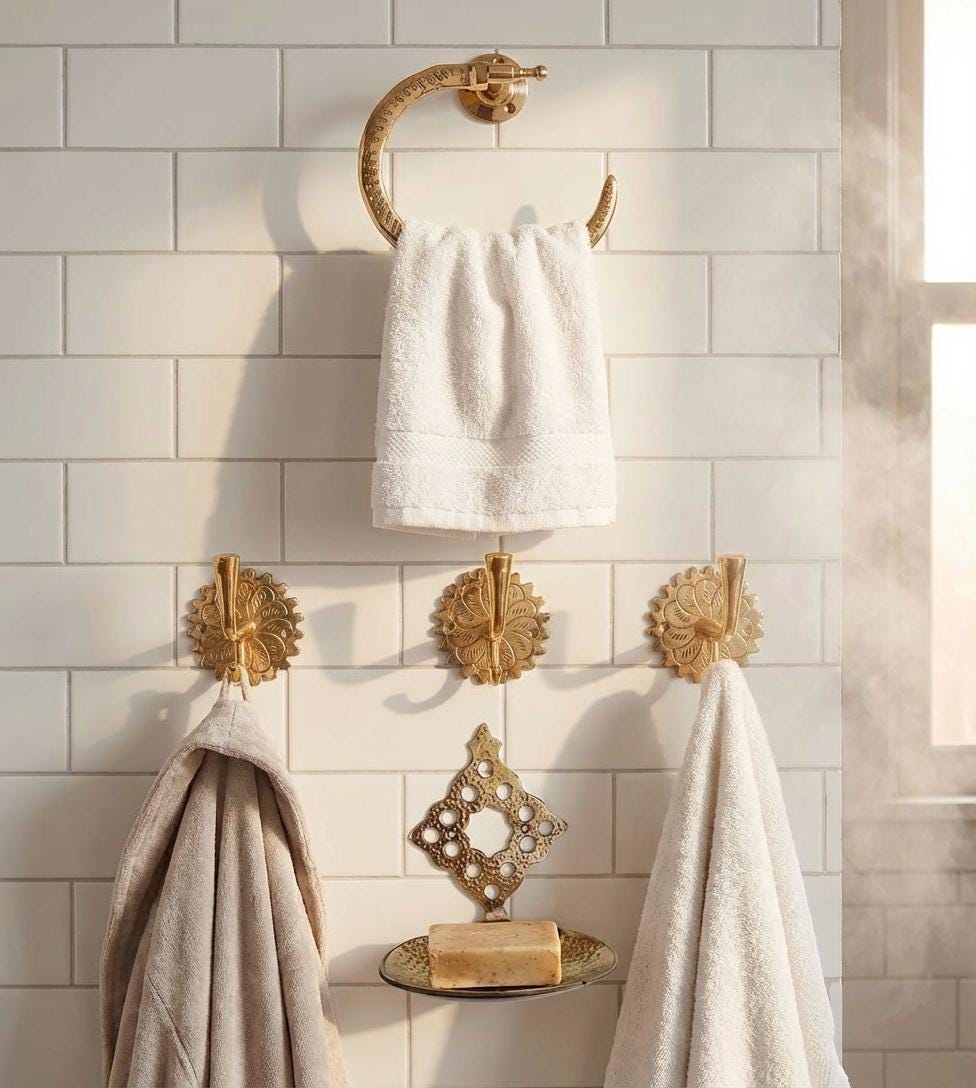 • Copper Wall Hooks – ideal for towels, robes, or accessories