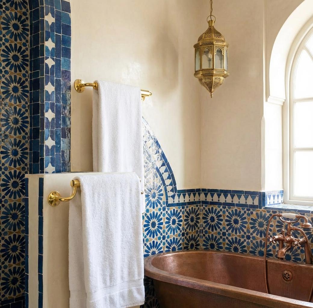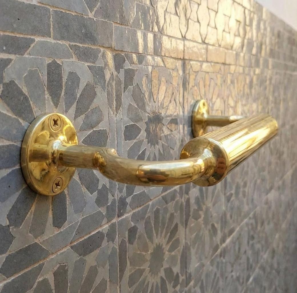 Add a touch of Moroccan luxury to your bathroom or kitchen with our Hand-Engraved Unlacquered Brass Towel Rail. Every bar is hand-forged and meticulously engraved by master artisans in Marrakech. The intricate patterns reflect a heritage of craftsmanship, turning a simple utility into a stunning focal point.