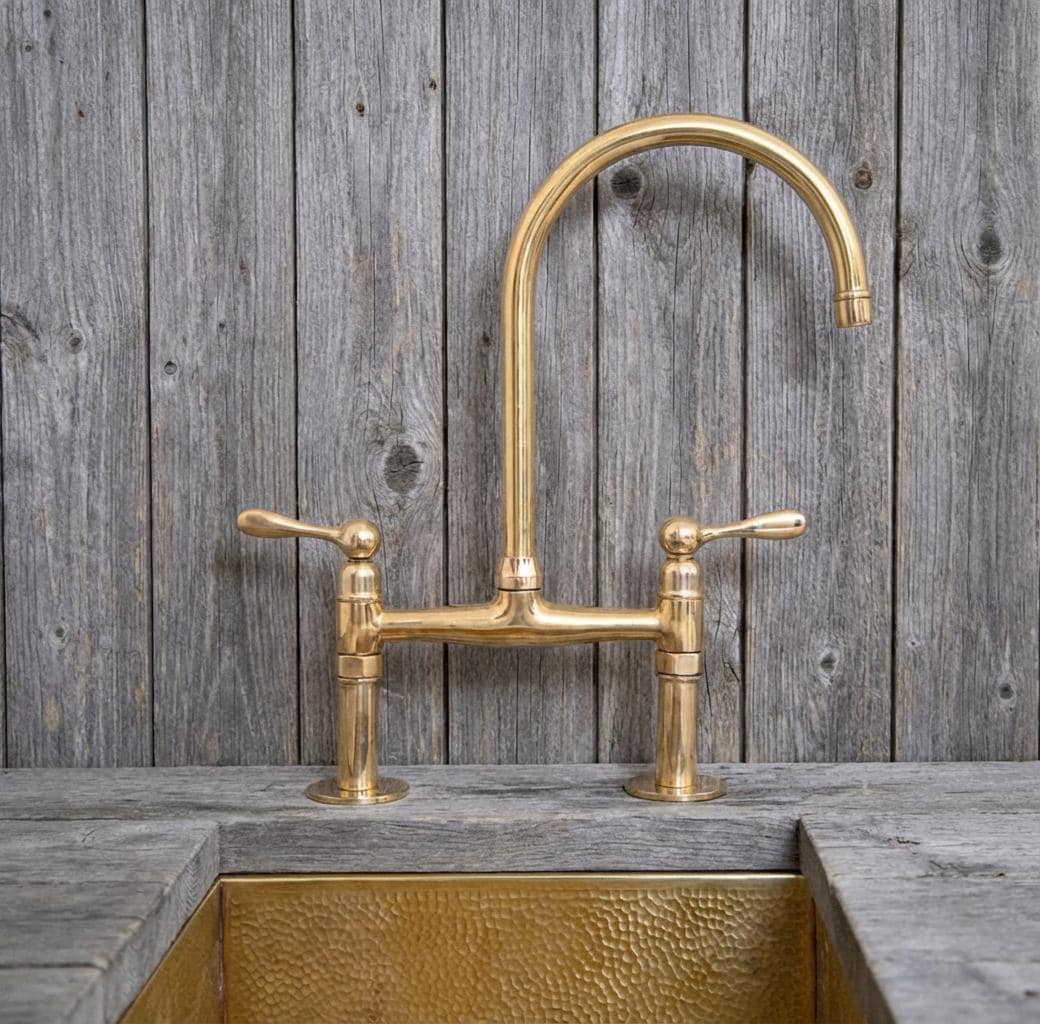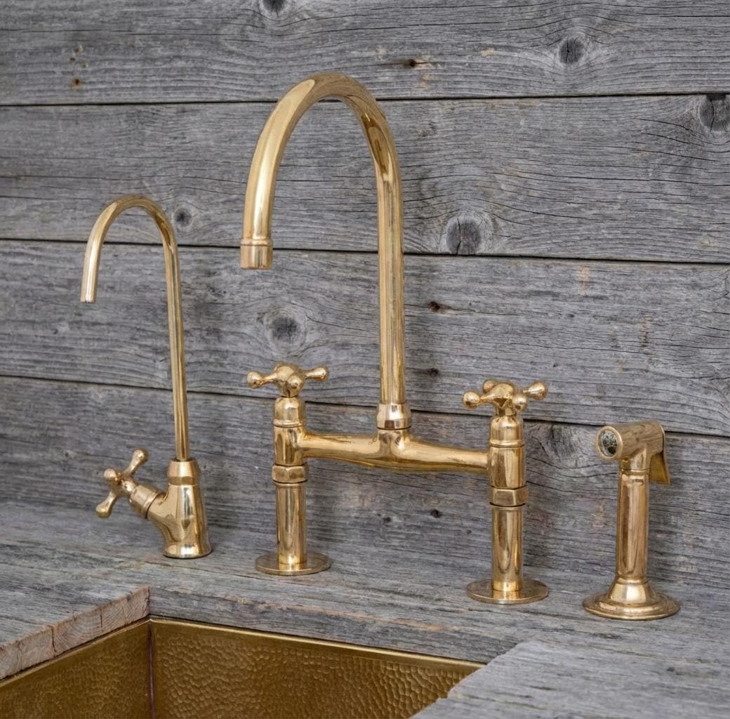 Transform your kitchen with our Antique Brass Bridge Kitchen Faucet.