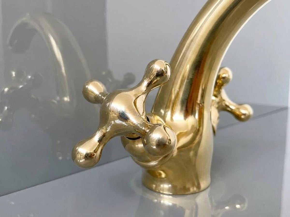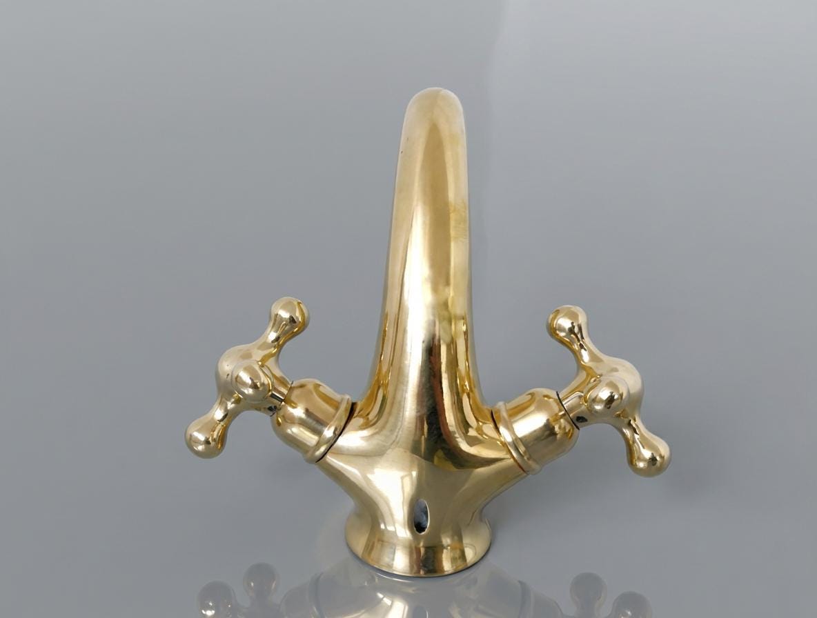 This stunning mono-block faucet is a masterpiece of artisan craftsmanship. Specifically designed for those who appreciate the "living finish" of raw brass, this tap will evolve over time, developing a unique antique patina that tells the story of your home. Its elegant curves and classic cross handles make it a perfect fit for both traditional and modern-rustic aesthetics.