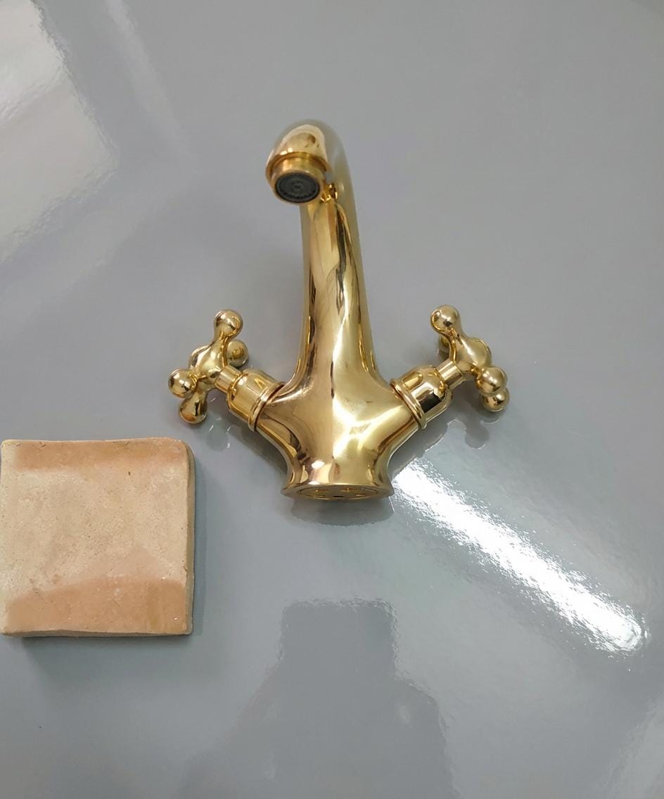 Add a touch of timeless luxury to your bathroom with our Handcrafted Unlacquered Brass Basin Faucet.