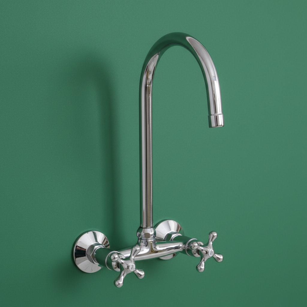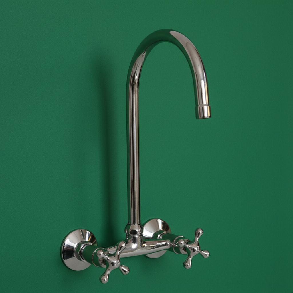 Bring Timeless Elegance to Your Home with Our Handcrafted Unlacquered Brass Wall-Mount Faucet.