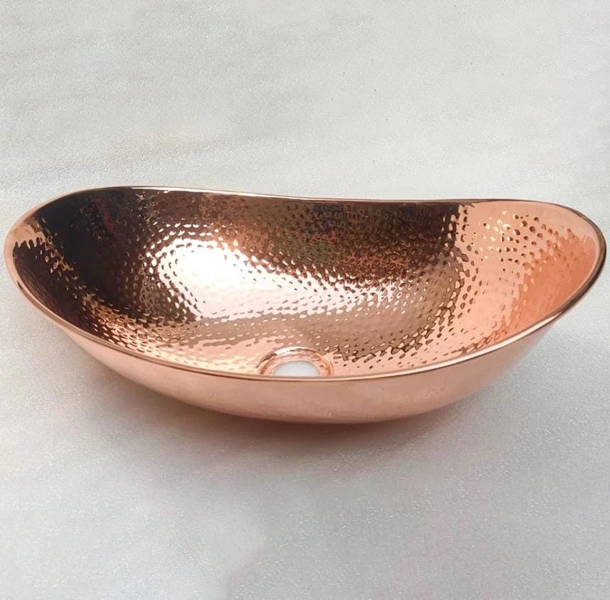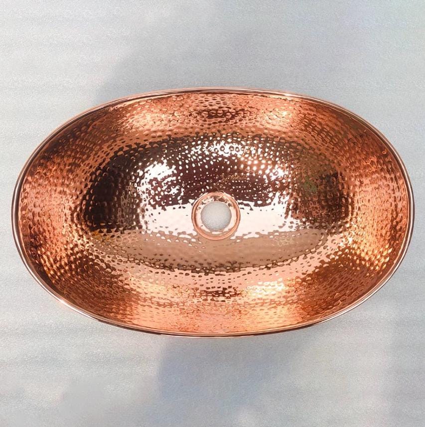 Introducing the epitome of elegance and craftsmanship, behold the exquisite handmade Vessel Ovale Sink in copper. This stunning creation is meticulously crafted to elevate your bathroom or kitchen with its unparalleled beauty and timeless appeal.