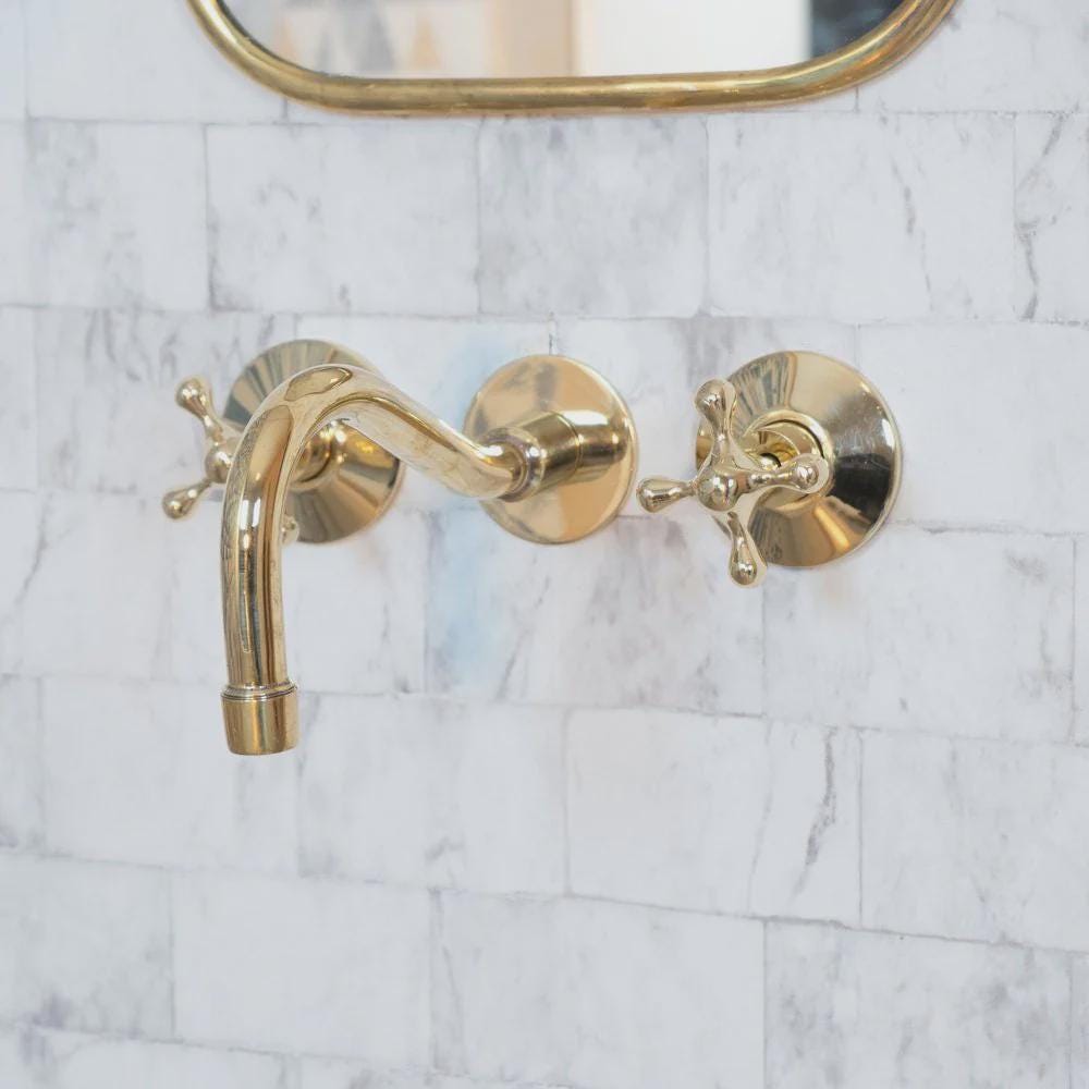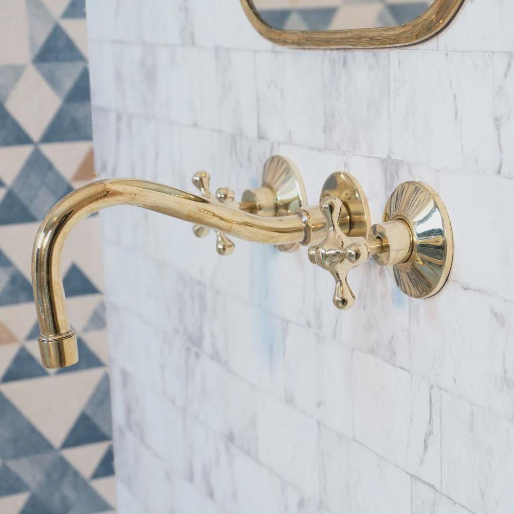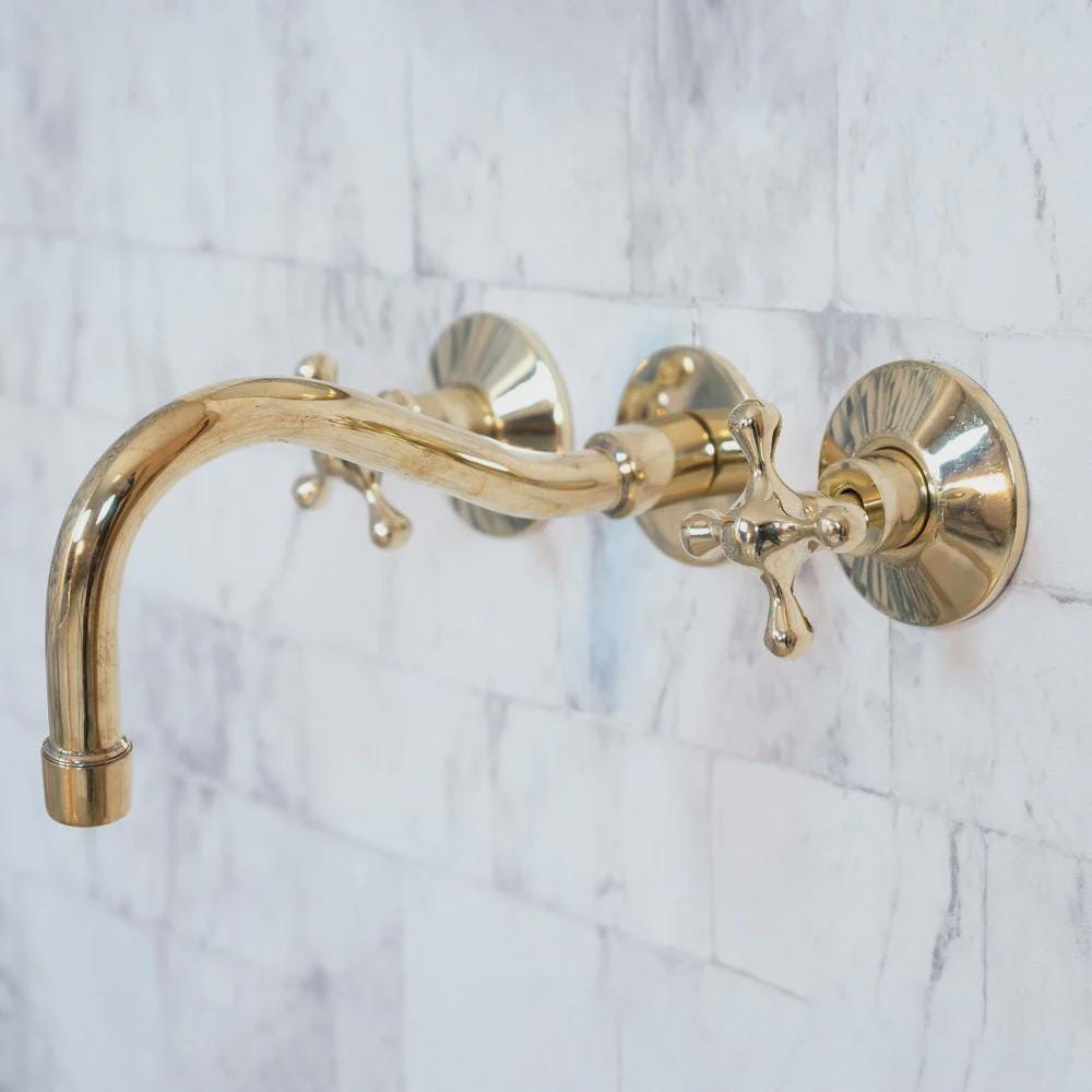 The simple beauty of this handcrafted antique brass Cobra wall-mounted brass faucet is a perfect fit for either kitchen or bathroom it will add a traditional look for above-counter and wall-mount installations.