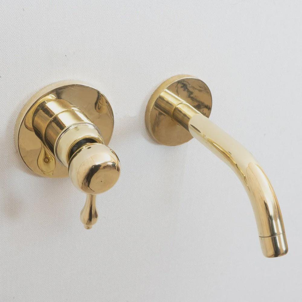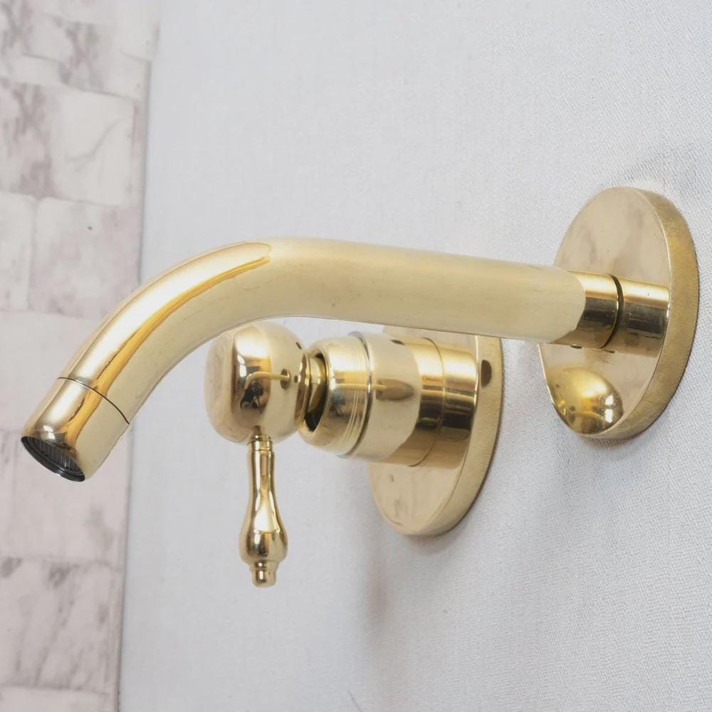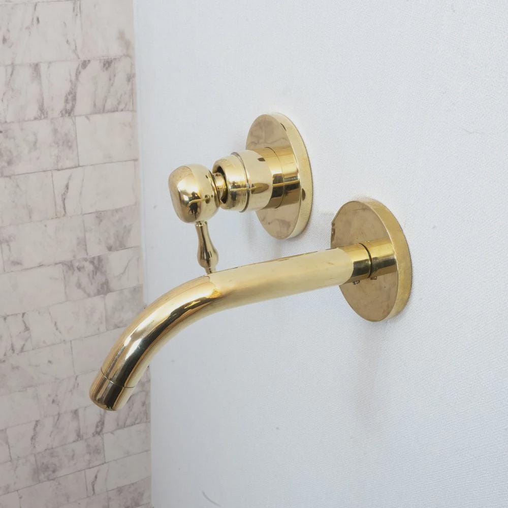 The simple beauty of this wall-mount bathroom faucet is a perfect fit for a vessel sink in your modern bathroom or kitchen with a heavy handcrafted lever handle,