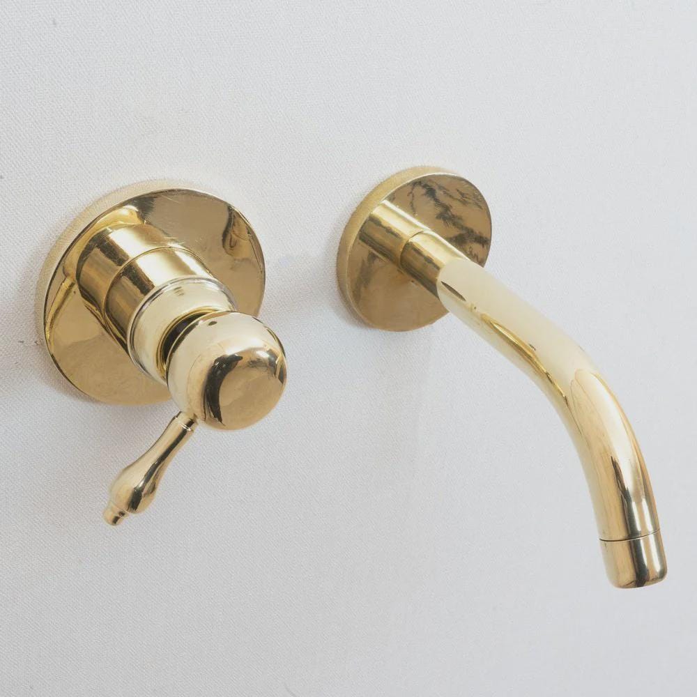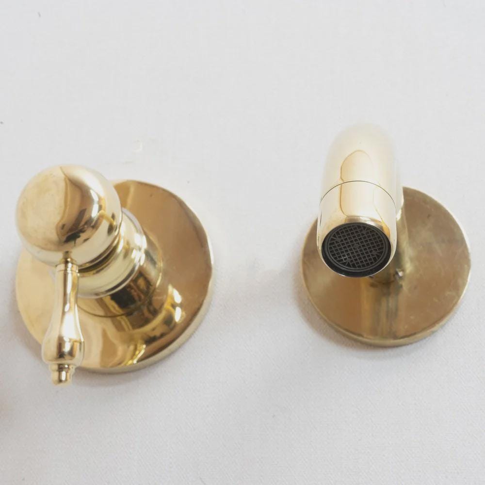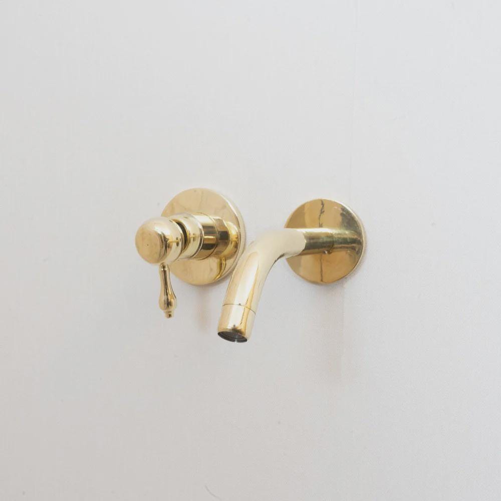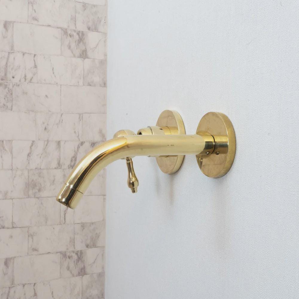 The simple beauty of this wall-mount bathroom faucet is a perfect fit for a vessel sink in your modern bathroom or kitchen with a heavy handcrafted lever handle,