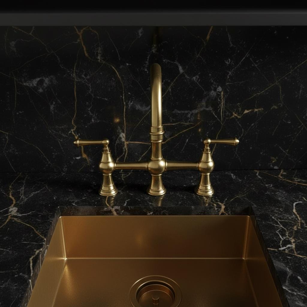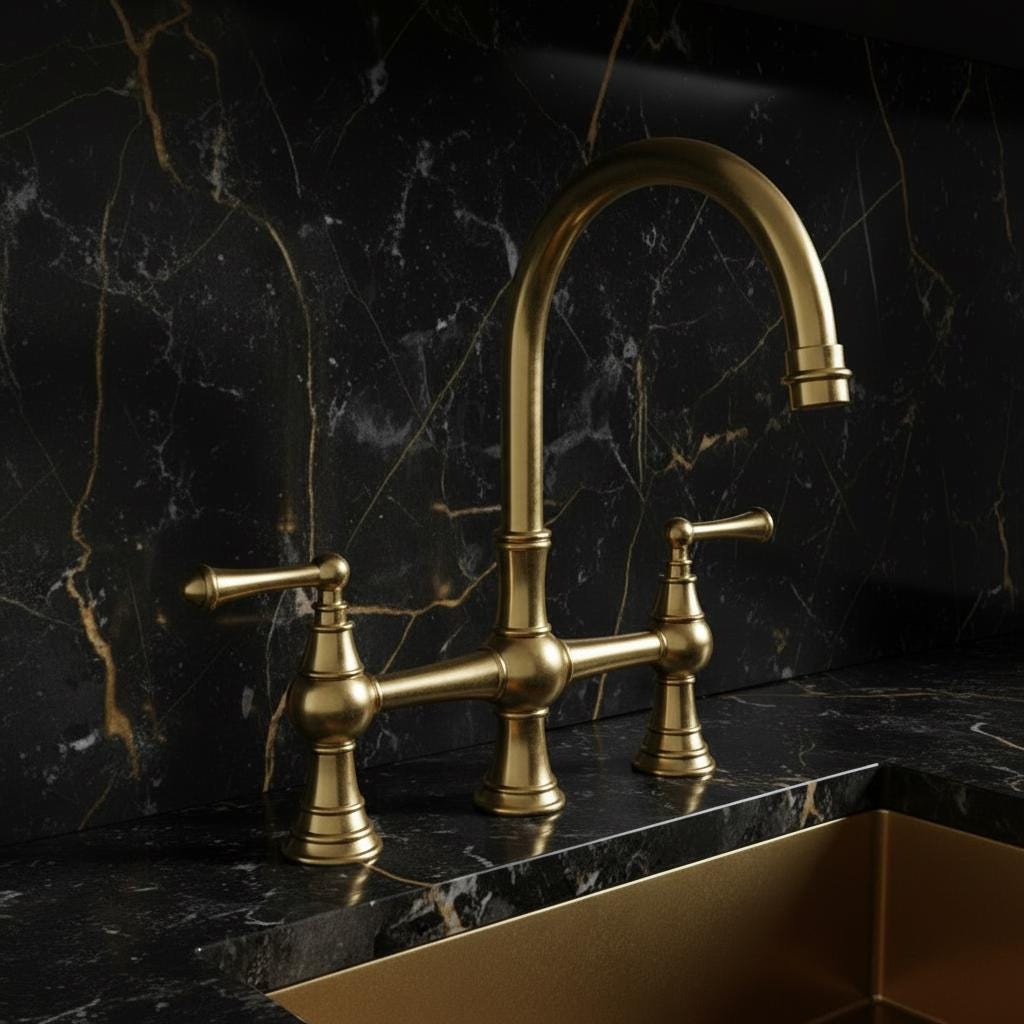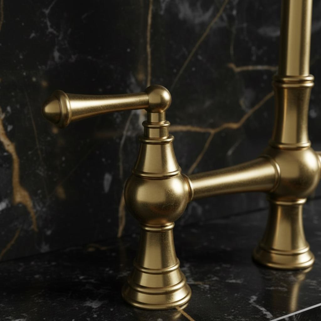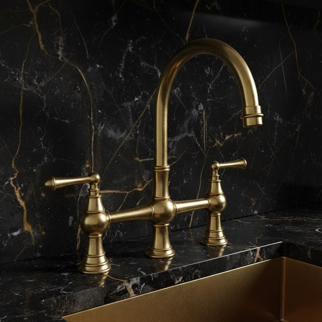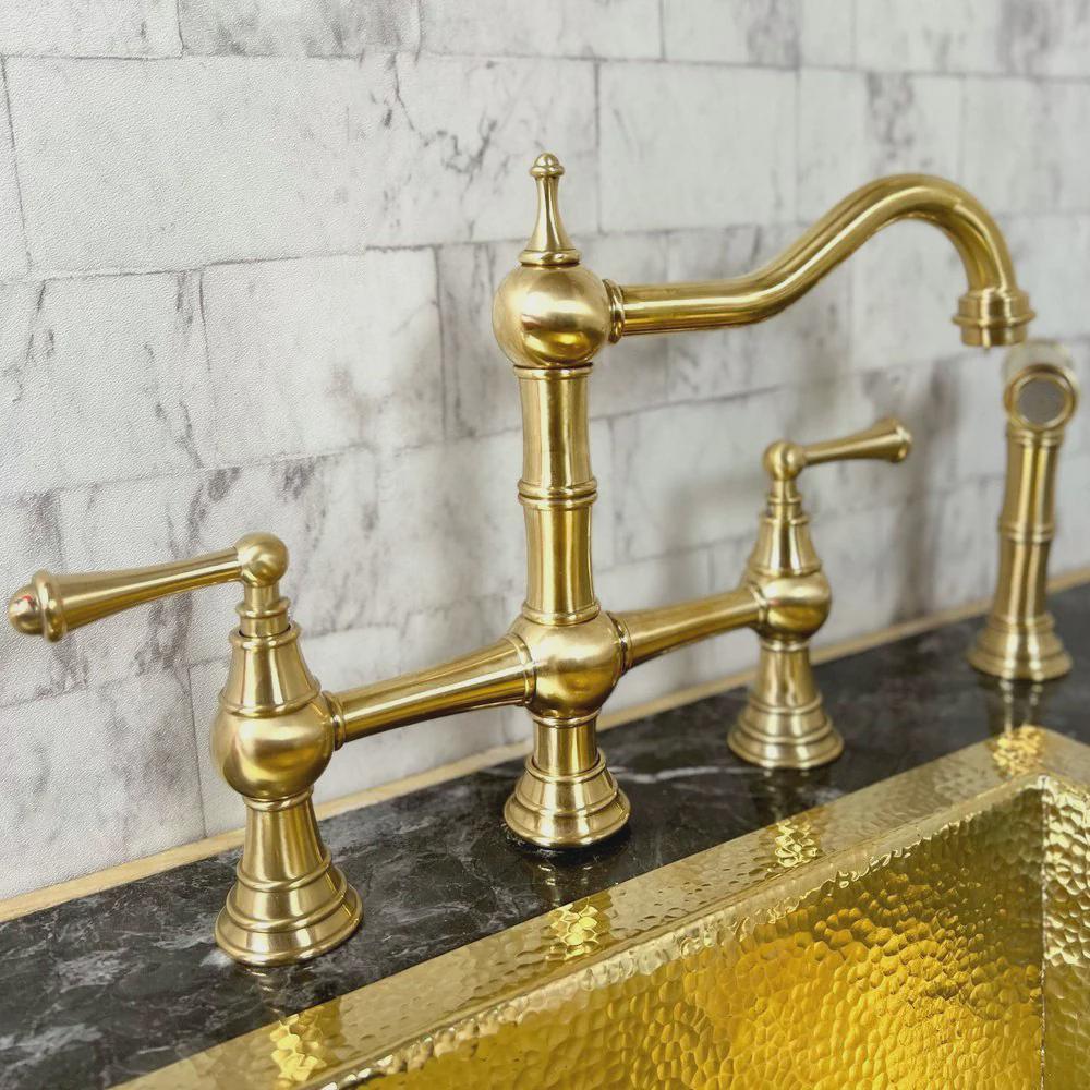 Designed for those who appreciate timeless elegance and artisan craftsmanship, this bridge faucet is made from high-quality solid brass. The "unlacquered" finish means it will develop a beautiful, natural patina over time, giving your kitchen a unique vintage character that only gets better with age.